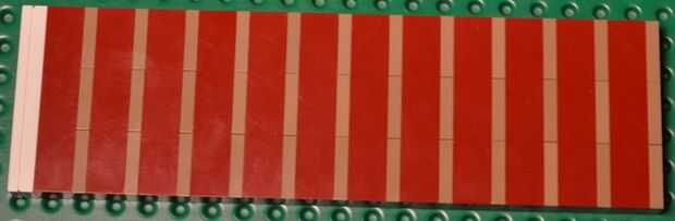 La parte principal de la pared - el "papel pared rayas" se compone de 1 azulejo, ladrillos de 12 y 13 placas. Alternativamente - si querías un solo color, sin rayas, se pueden utilizar 16 ladrillos, 1 plato y 1 azulejo desde 3 placas = 1 ladrillo. Usando la matemática misma, creo que lo más fresco es que esto podría construir con 49 placas para un diseño de rayas 'más' o más alterna - posibilidades son infinitas!