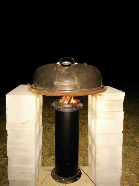 Coloque un bloque de la estufa encender entonces dos pilas de bloques para sostener el conjunto de la parrilla. Debe haber una 4" a 5" la brecha entre el propagador de llama y la estufa. Coloque la estufa en el centro y colocar el propagador de la llama en los bloques de apoyo. parrilla del lugar directamente en el propagador de llama (debe haber suficiente de un espacio para que los alimentos nunca toca el propagador de llama). Lugar ahora que estás arriba en y listo