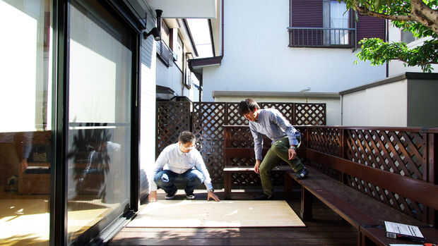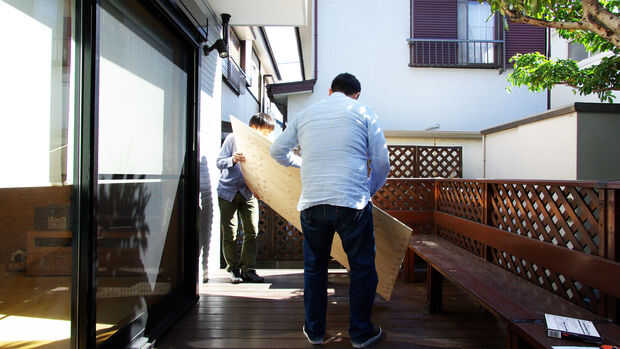 Extensión de madera contrachapada sobre el terreno. Construir la choza en este top.