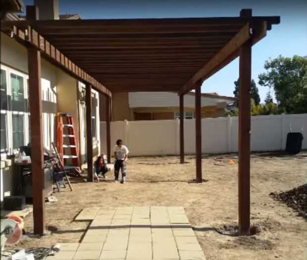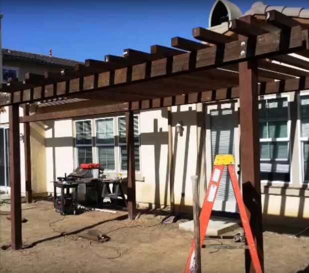 Como se puede ver por estas fotos, me fui con un diseño muy rústico y simple para mi pérgola. Muchos diseños que puede encontrar tienen cortes de lujo y madera más de lo necesario pero creo que este estilo va bien con mi casa.