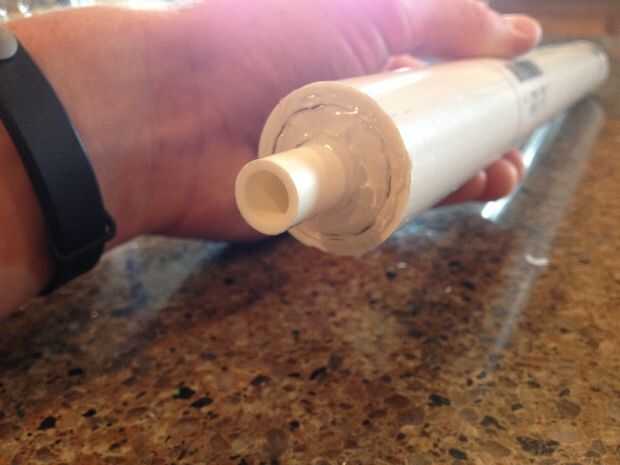 Luego corte una longitud de un tubo su uso como un barril de aproximadamente una pulgada más de largo que el 1 pulgadas de tubo de pvc. Luego puede pegar el cañón en el pvc de 1 pulgada. Asegúrese de que un lado es completamente plano en la parte inferior.