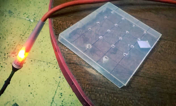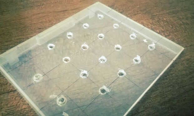 estoy haciendo 4 * 4 * 4 led cubo así que hice 4 * 4 agujeros.