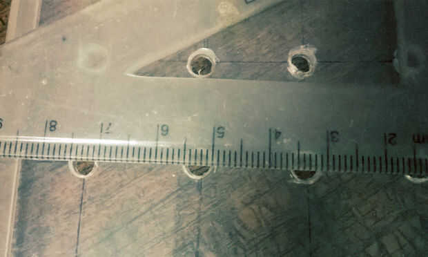Ahora perfore la deseada donde las líneas horizontales y verticales cruzan.