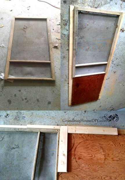 Probablemente no en vano fue cuando Joe salió en nuestra "caseta de madera" fuera, cortar madera, cuando miré por el lado de la construcción y había visto esta ventana vieja. No tengo idea cuánto tiempo había estado allí y no podía creer que yo no había notado antes. El momento lo cogí y había inclinado contra el garaje, sabía que era todo lo que yo había estado buscando. Trágicamente, la pantalla inferior fue en muy mala forma de reparar así que tuve que cortar, así que la ventana (ya demasiado corta) terminó demasiado corta a nuestra puerta. Por lo tanto, llegué a trabajar.