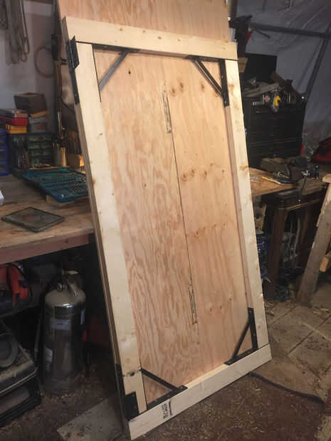 Yo quería la puerta para tener algunas buenas fuerza y peso que usé chatarra 5/8 planchas de madera. Esto añade un peso considerable a la puerta, 3/8 capa haría muy bien y sobre todo si no utilizas los soportes.