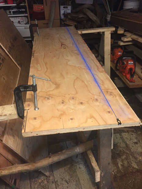 Cortar la capa para colocar y atornillar en su lugar. Deje la madera extra que domina en la parte superior del arco. Creo que dejó unos 10" de la proyección.