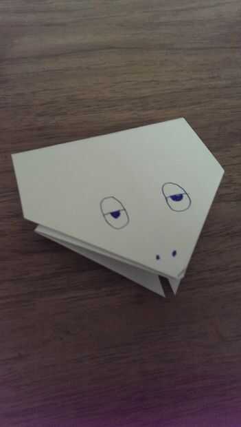 Cualquiera de varios anfibios sin cola cerveza de malto-bodied con extremidades traseras largas para saltar!¡ Origami!Déle un intento!Paso 1: Doblar por la mitad Doblar por la mitad.Paso 2: Abra y calabaza Abrir y aplastar.Doblar la aleta al otro lad
