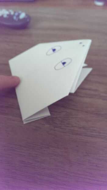 Cualquiera de varios anfibios sin cola cerveza de malto-bodied con extremidades traseras largas para saltar!¡ Origami!Déle un intento!Paso 1: Doblar por la mitad Doblar por la mitad.Paso 2: Abra y calabaza Abrir y aplastar.Doblar la aleta al otro lad
