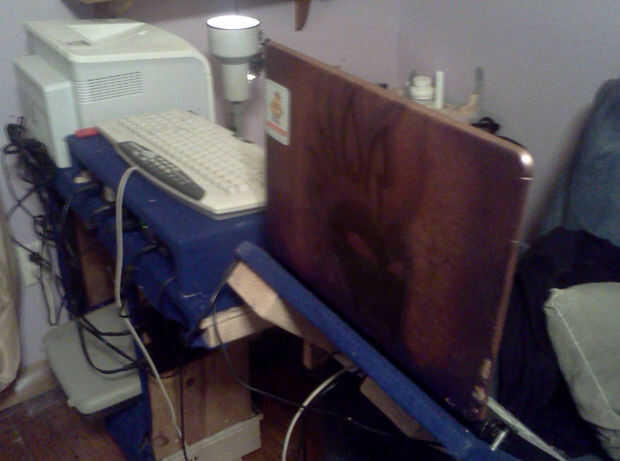 últimamente la mayoría de mi trabajo se realiza en mi portátil y tratar de mantener todo junto (ordenador portátil, impresora, escáner, disco portátil y varios otros accesorios necesarios) necesito un puesto de trabajo que yo puedo rodar alrededor de la casa para trabajar con. Miré en varias estaciones de trabajo prefabricados con la capacidad de giro, sin embargo la mayoría no cumple con todos los aspectos que necesitaba. Con trozos de madera de mi proyecto de caja de altavoz y un acero de 8ft L-canal que recogí de la descarga alguien tiró. Decidí probar y construir una estación de trabajo personalizada.