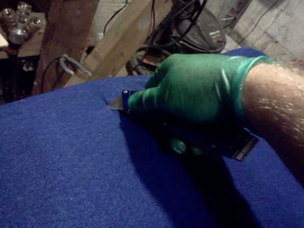 En una hoja de afeitar nueva de mi cuchillo recortar el fieltro como estaba poniendo cada pieza.