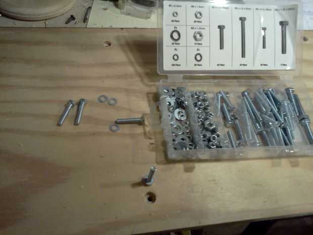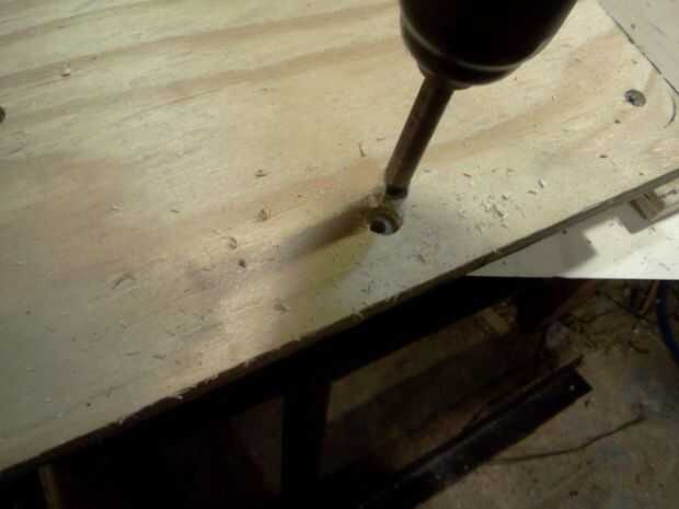 Primero empieza con el tablero de la mesa y perfore agujeros en varios lugares en pernos, arandelas y tuercas para sujetar a la parte larga del marco.