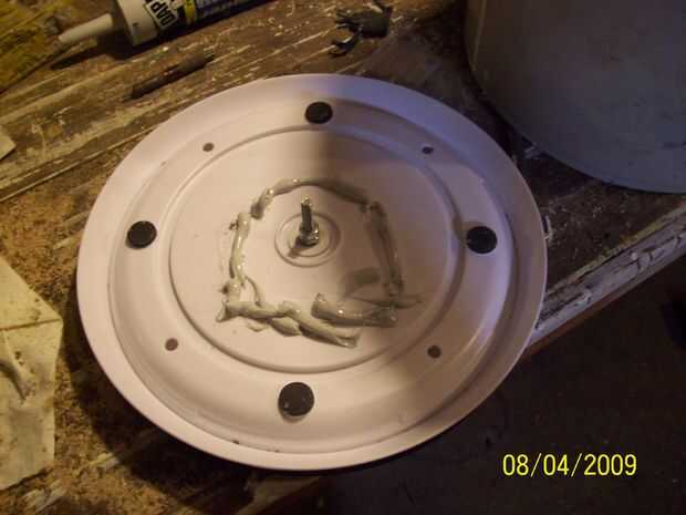 Aplique una cantidad abundante de silicona en la parte posterior de la lazy Suzan y colóquela sobre el cubo de tal manera que el tornillo va en el portabrocas del taladro. Apriete el mandril.