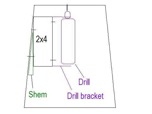 Para alinear el taladro con el orificio de 3/8 que fue perforado en el cubo anterior simplemente usé un pedazo corto de cuña de madera de 2 x 4 y algunos tornillos.