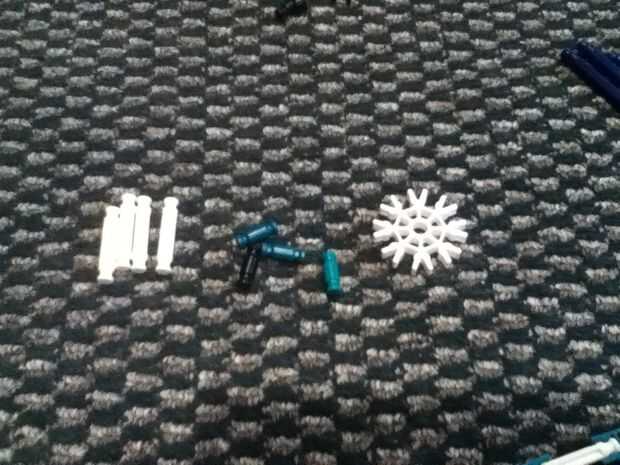The first frame: (Pic 1) get these pieces, 8 white axles(got cut off) and 8 green connectors (Pic 2) make this (Pic 3) 8 of them (Pic 4) attach it on like this (Pic 5) make this (Pic 6) get these pieces, 4 seven slot connectors and 8 small green axles (Pic 7) make this (Pic 8) 4 of them (Pic 9) attach one here (Pic 10) another here (Pic 11)another here (Pic 12) another here (Pic 13) vista (Foto 14) conseguir estas piezas, 4 ejes blanco, conector de un copo de nieve y árboles verdes pequeños 4 (foto 15) adjuntar aquí (foto 16) y aquí (Foto 17) y aquí (Foto 18) y aquí (Foto 19) hacer este (foto 20) adjuntar aquí vista (Foto 21)