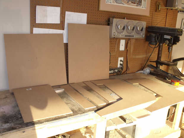 Sacar la forma de la arcada en MDF de 1/4". Recortar con una sierra circular, Sierra caladora, etc.... Medir y cortar las partes restantes. Mi gabinete es de 24 "x 18" x 24 "(H x W x D). Atornillar todas las piezas.