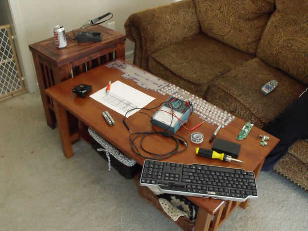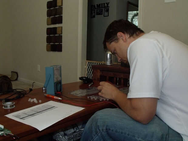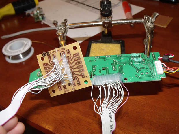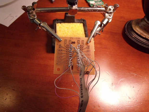 la soldadura de los cables entre los contactos que usted necesita y una placa de circuito de prototipos de radioshack. Un buen consejo es una vez que tenga su punto de soldadura hecho, sofocar la cosa entera en el pegamento caliente por lo que ningún cable accidentalmente consigue sacar.