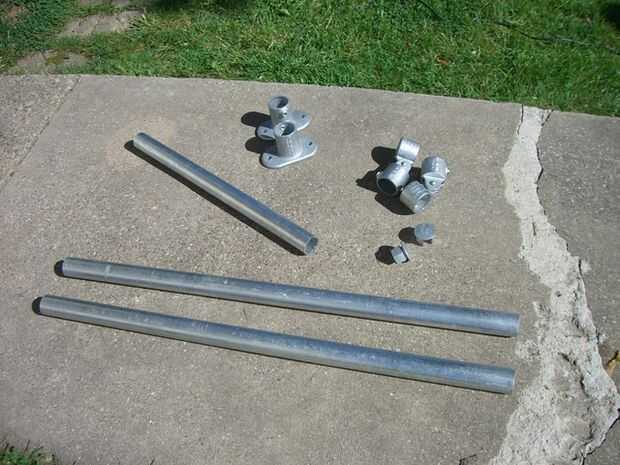 Tenemos tres piezas de calibre 40 tubos de acero galvanizado 1-1/2". Esto puede conseguir en una tienda local de la pipa (nota no te en Home Depot)
