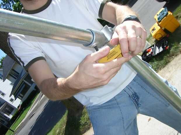 Después de asegurar el puesto a la brida de la base conecta el C50-88 y luego atamos el pasamanos. Dejamos la barandilla colgando para el siguiente paso.