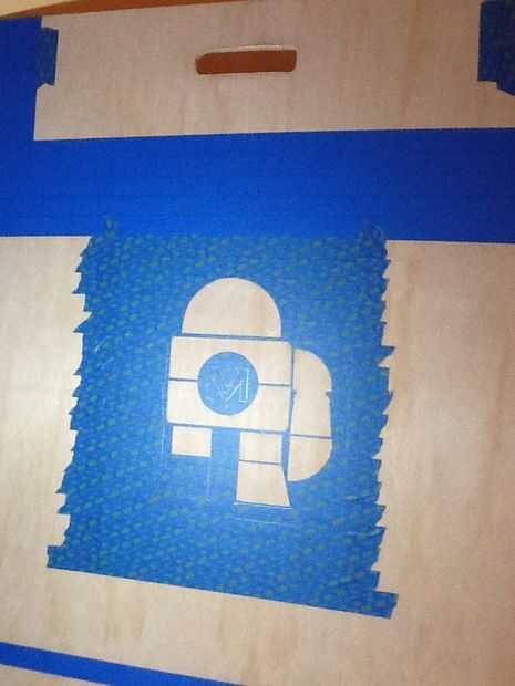 Entonces comenzamos el proceso de estarcido imágenes sobre la mesa, elegimos el Bot Makey y varios otros símbolos.