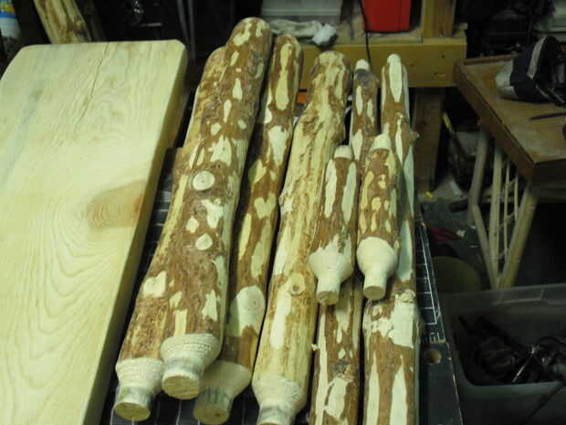18 pies lineales de troncos de pino dondequiera a partir 2 a 3 pulgadas de redondo generalmente funciona mejor. Utilice el drawknife y saltar la piel hasta logra el aspecto deseado. Si tienes bien largos, fácil de pelar antes de corta a su tamaño.
