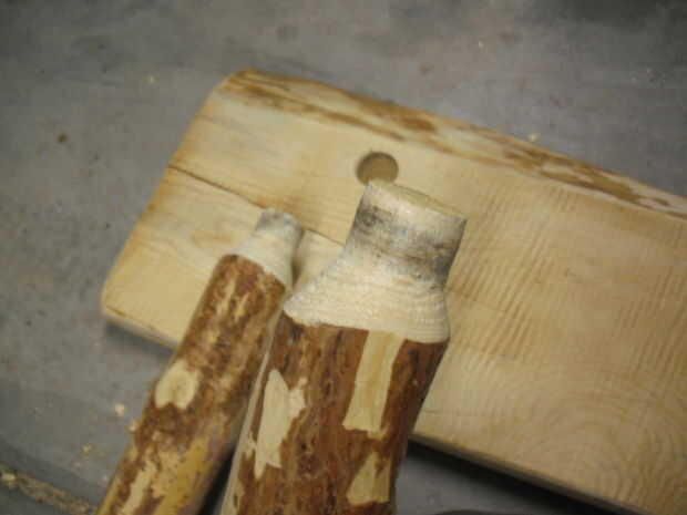 Utilizar un cortador de 2" espiga y espiga sólo un lado de las piernas.  Asegúrese de colocar el extremo más gordo para que las piernas de la forma cónica hacia arriba.  Utilizar una espiga de 1 1/4" a ambos lados de las cuatro llaves.