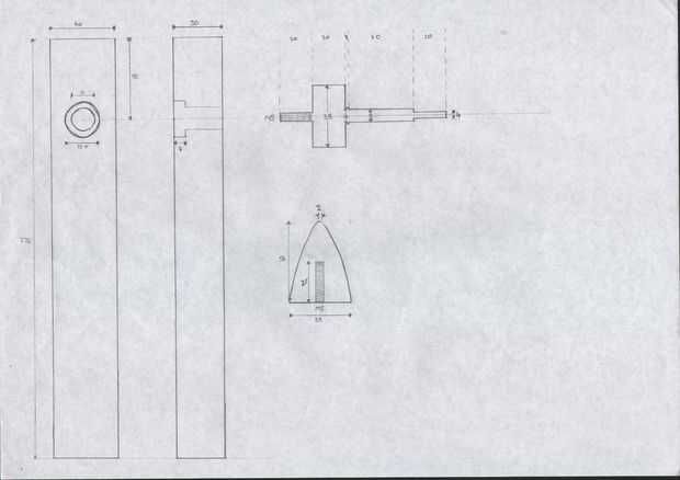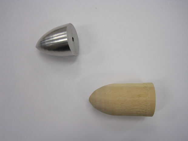 La nariz de la turbina de viento podría hacerse de aluminio en torno a las dimensiones indicadas en este diagrama. Para nuestra turbina, elegimos usar una nariz de madera en el torno y vacío la había cubierta para una superficie más lisa.