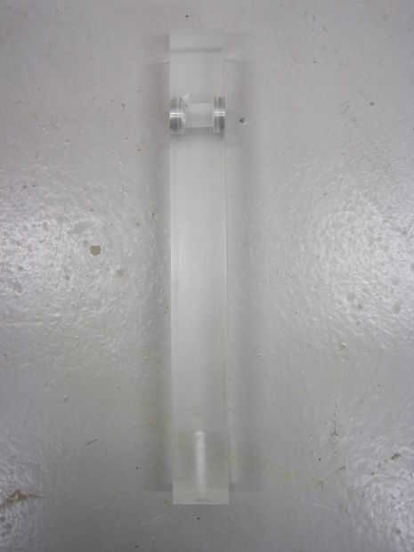 Para hacer el soporte hemos perforado dos agujeros en la cara de una de 40 x 30 x 276 bloque de metacrilato. El primer agujero va directamente a través del bloque de perspex y el segundo agujero va sólo 7mm de profundidad. Las dimensiones se dan en el diagrama.