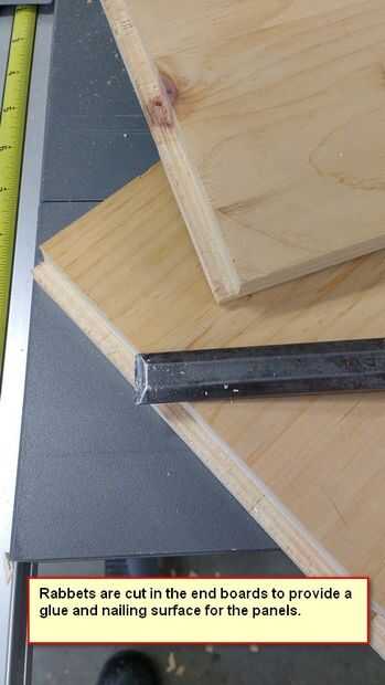 1. Comience cortando los extremos 2, 12 X 12. Corte un rebajo de ¼" en los extremos para recibir el revestimiento paneles frontales y traseros.