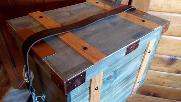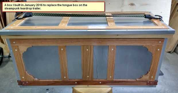 Las 3 últimas fotos son de un estilo similar de la caja que he terminado recientemente. Construcción similar que es. Reemplazará el cuadro de lengua que hay actualmente en mi trailer de lágrima de steampunked. Es una caja de madera contrachapada revestida aluminio recortada hacia fuera con una gran cantidad de roble y complementa el diseño de la lágrima. Aprox. 30 x 14 x 14.