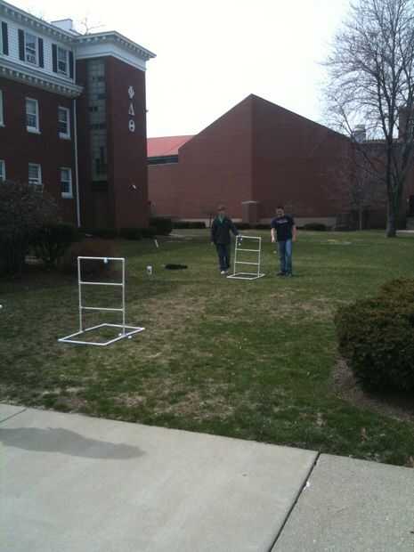 o cuelga todos los bolos de tres en la parte superior peldaño sin el otro equipo que se cuelga en la escalera.