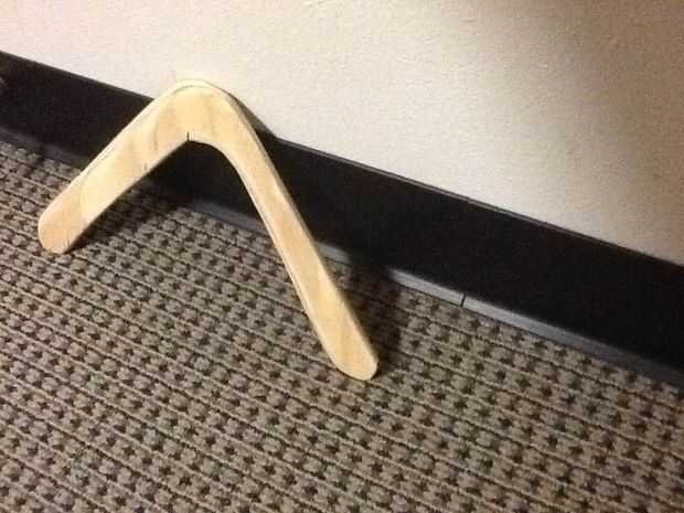 Hola mundo, este es mi primer inescrutable y espero que les guste!!!Un boomerang es una herramienta lanzada, construida típicamente como una hoja plana, que está diseñada para girar sobre un eje perpendicular a la dirección de su vuelo. Un boomerang