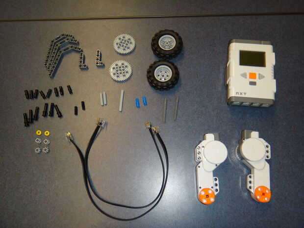 Después de obtener un kit de robótica Lego NXT, colocar todas las piezas en el kit. El suministro debe contener todo lo que está en la foto de arriba