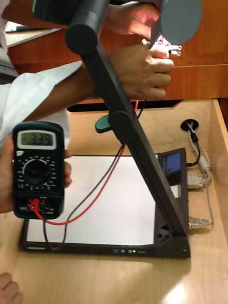 ADVERTENCIA: colocar la célula solar directamente bajo el sol sin la protección adecuada puede causar degradación severa. Inicial de prueba bajo fuentes de luz que no emiten radiación UV). Registrar la tensión máxima y la corriente producida por la célula solar. Multiplicar estas dos figuras para obtener la potencia de salida.