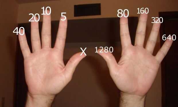 Por lo tanto, para empezar, todos los dedos están hacia abajo; Esto es cero. Toque el dedo pulgar a los dedos puntero, acemite, anillo y pinky para contar 1, 2, 3, 4. A continuación, hacer por lo que el pulgar no es tocar cualquier dedos y hacia arriba el dedo indicador para conseguir cinco. El pulgar toca otra vez a contar hasta 6, 7, 8, 9 y luego el dedo puntero hacia abajo y el dedo medio hasta obtener diez. El pulgar toca otra vez a los 14, entonces tiene su puntero y dedo medio hasta obtener 15. Continúe haciendo esto, hasta que todos los dedos hacia arriba y el dedo pulgar tocando su pinky, por un valor de 2559.