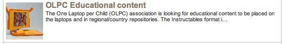 OLPC planes para hacer una revisión de contenido de nivel superior en septiembre, así que asegúrese de obtener su Instructables en el grupo 10 de septiembre.