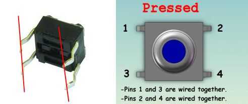 Así que cuando se presiona el botón pines 3 y 1 conectar entre sí, completando el circuito.