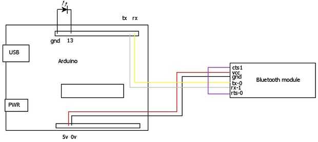 Entonces conecté + 5v y 0v para el bluetooth del tablero de arduino y suministran la placa arduino con 5volts.