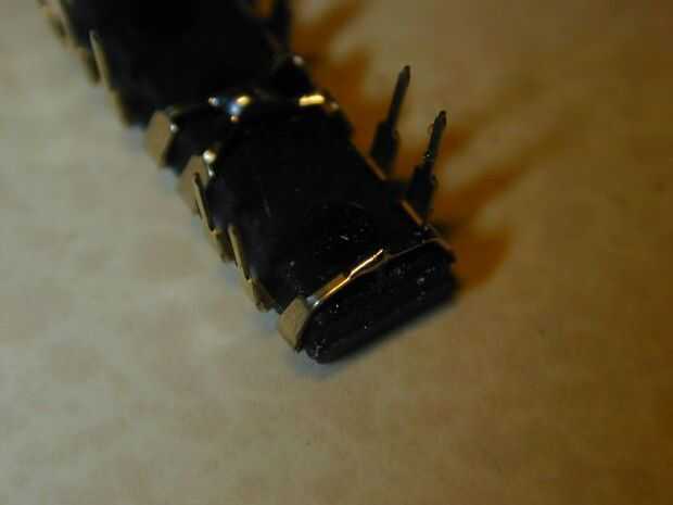 Doblar los pines 1 y 16 juntos en la parte inferior del chip y la soldadura.
