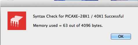 Pulse f4, o ir a PICAXE > comprobar sintaxis para asegurarse de que todo se escribe correctamente, a continuación, presione f5 o va a PICAXE > programa para descargar el programa a la Junta