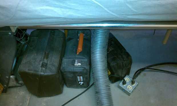 I then tested it out.  Conecté a mi aspiradora de taller e hizo un giro.  Trabajan como un encanto.  Limpieza fue rápida y fácil.  Todo lo que tenía que hacer es cepillo el polvo hacia el accesorio de vacío y terminé la limpieza.  He añadido algunas fotos para mostrar que hay no hay aserrín en el piso o en las herramientas en mi portaherramientas delante del torno.  Normalmente pasaría 20min para limpiar para arriba después de dar vuelta.  Estoy muy contento con esta adición a mi herramienta.