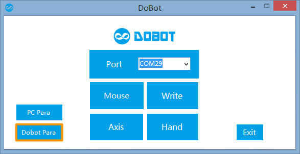 Ejecute el Dobot.exe en la carpeta de equipo superior, haga clic en Dobot Para para ajustar los ángulos de inicio.