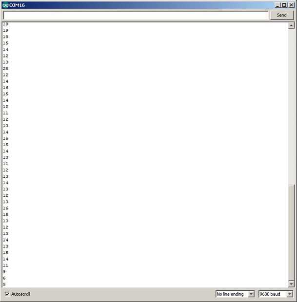 Compruebe el cableado y añadir el código de Arduino. Luego abra al Monitor de serie y mover su mano sobre el módulo. El serial monitor debe mostrar una lista de números... La distancia en cm entre él y su mano.