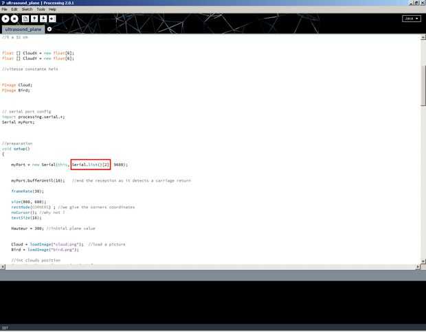 Así que cuando el jugador mueve su mano, se envía un nuevo valor de la distancia. El bosquejo de procesamiento obtiene el valor, revisar y aplicar el nuevo valor a la variable de altura. Mientras tanto, el juego continúa...