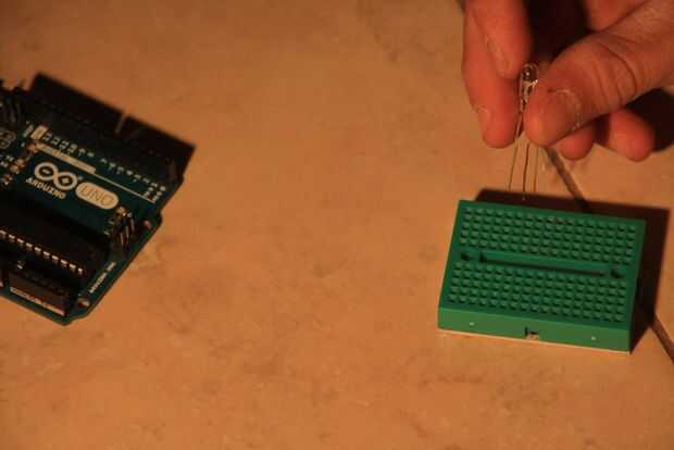 Para comenzar con, vas a necesitar conectar tu LED RGB donde en el protoboard. Sólo asegúrese de que todos los cuatro pines están disponibles.