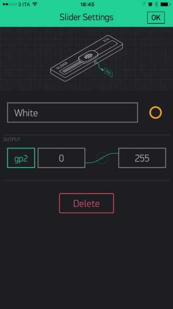 El segundo widget que necesitamos agregar es un SLIDER para el brillo de los leds blancos.