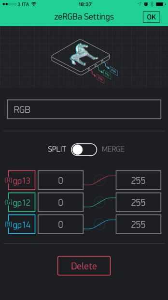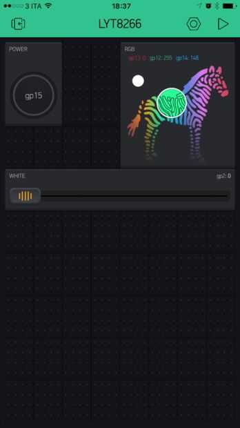 El último widget que tenemos que agregar es un controlelr zeRGBa para el control de leds RGB.