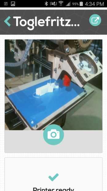 Puede iniciar una impresión 3D pulsando el logo de la impresora 3D junto a cualquier modelo que desee imprimir. Cuando usted presiona el botón Imprimir le llevará a una página donde usted puede monitorear el progreso de su impresión.