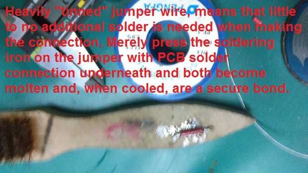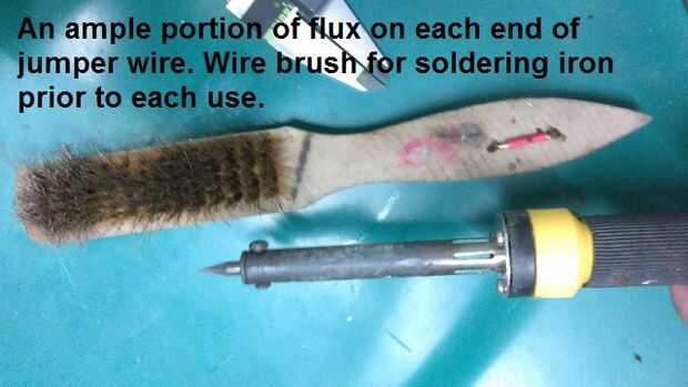 Paso 16: Preparación de puente incluye estañar el cable de acoplamiento.