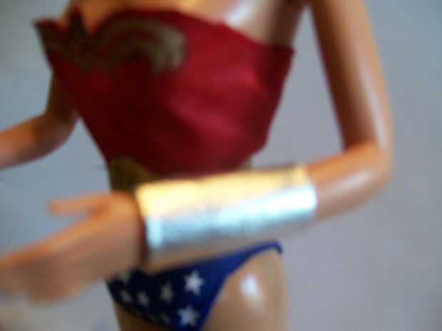 Para las pulseras, vamos a hacer esto tan simple como sea posible. Cortar un trozo de tubo de papel higiénico cerca de 2,5 cm que va con la curva de 3,3 cm. envolver en papel aluminio, doblando los bordes hacia la parte trasera. Envuélvalo alrededor de la muñeca de la muñeca. Si quieres pulseras que son permanentes o más difícil que bajar, pegamento caliente la superposición termina juntos. Si quieres que sean removibles, use un pequeño trozo de cinta de Velcro en cada extremo.