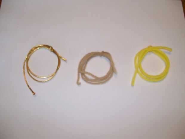 Para el lazo de la verdad, algunos cable de oro artesanal, hilado en cáñamo incoloro, amarillo o tan. Envolver tres bucles en un círculo de 4 o 5 cm de diámetro. Cortar y atar el extremo alrededor del paquete.